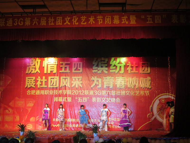5月30日晚我院第六届社团文化艺术节闭幕式暨五四表彰文艺晚会在大学生活动中心隆重举行。学院党委副书记、副院长田启昌老师,院长助理陈立老师、薛晓妹老师,学生处副处长安忠猛老师,中国联通合肥分公司领导代表以及各系党总支书记,学院办公室、学生处老师等观看了晚会。