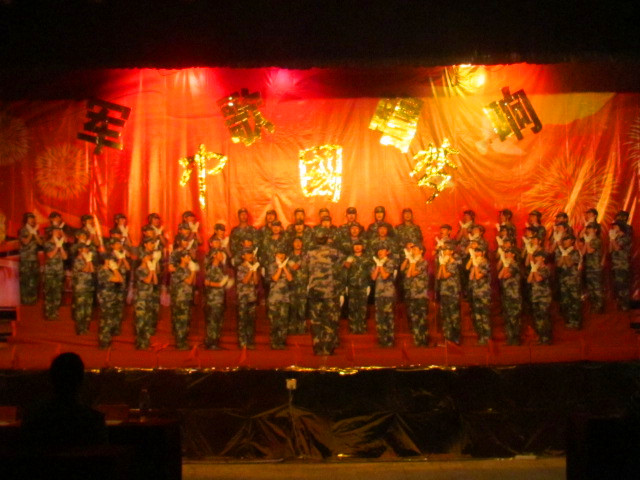 9月17日晚19:30,为检阅新生军训素质和精神面貌 “军歌唱响中国梦”新生军训歌咏比赛在俱乐部隆重举行。学院院长助理、学生处处长、军训团政委陈立老师,中国解放军陆军军官学院、军训团副团长施昊教官,学生处副处长、军训团参谋长安忠猛老师、学生处熊春杰老师以及各系党总支书记、辅导员老师等观看了本次比赛。