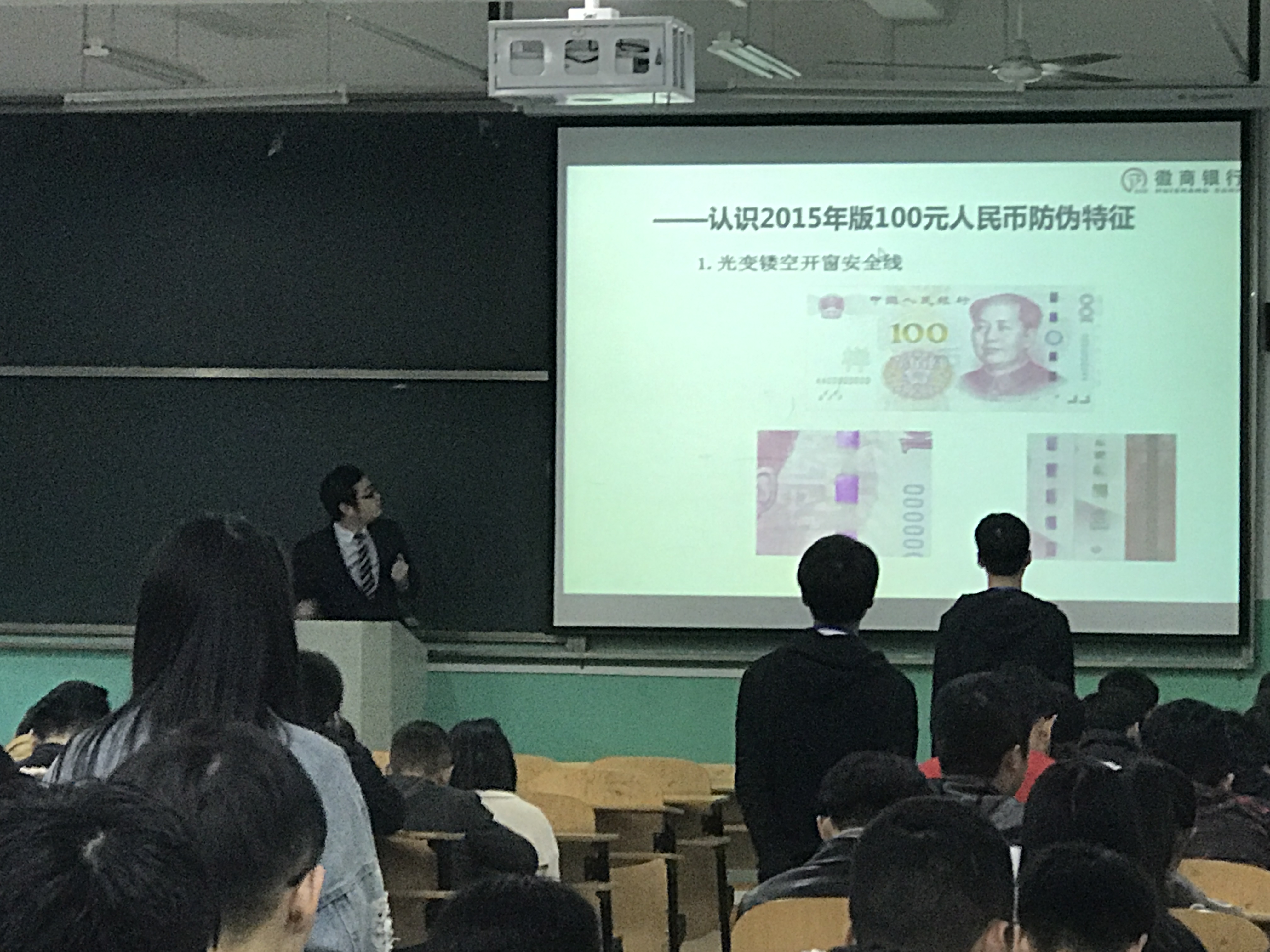 徽商银行重点针对大学新生,从如何辨别假币开始讲起,引起大家的兴趣。宣传人员深入课堂,通过PPT讲解方式为学生们介绍了第2015年版人民币的发展过程以及人民币的真伪辨别方法,分析了近几年来市面常见假币的主要特征并现场指导学生如何识别假币,引导他们在发现假币时应如何处置,如何维护人民币的尊严等。通过宣传指导,同学们基本掌握了看、摸、听、测等几种辨别假币的基本方法,提高了假币识别能力。