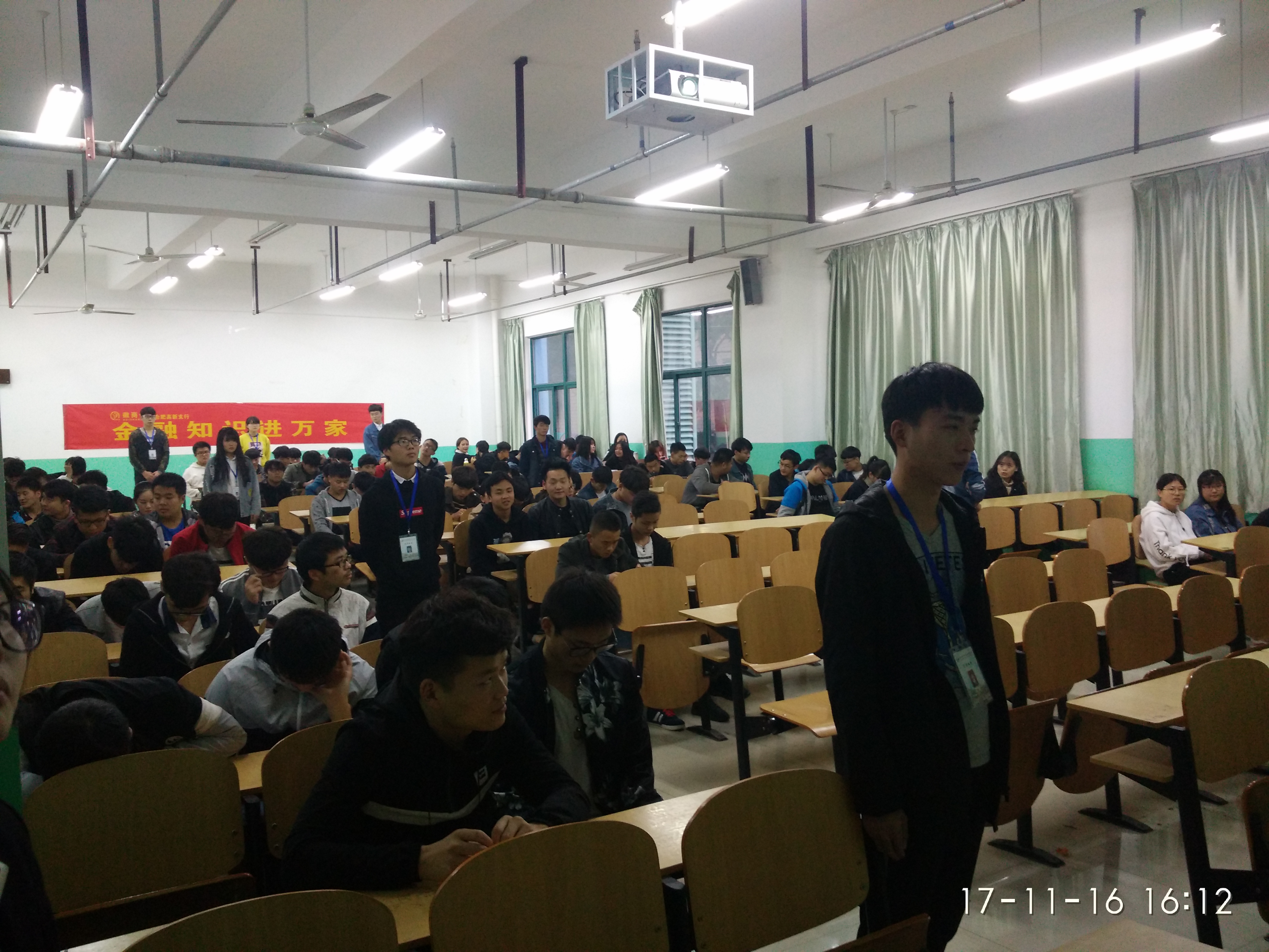 为进一步加强校园师生对金融知识的了解,提升大家对金融风险的识别和防范能力,2017年11月16日下午4:20-5:30,在我院教学楼101教室,开展了徽商银行“金融知识进校园”讲座宣传活动。