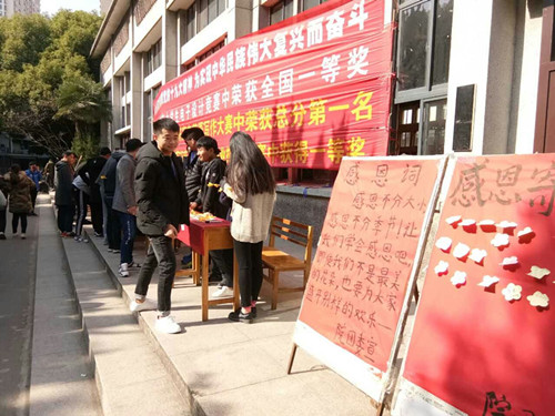 2017年11月23日中午,在感恩节这一特殊的日子,合肥通用职业技术学院团委在俱乐部门口举办了一场感恩节大型签名活动。
