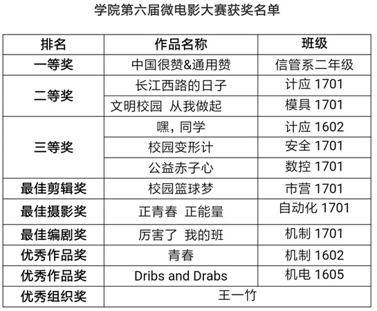 由信息管理工程系葛媛媛老师指导的微电影《中国很赞&通用赞》摘得桂冠,荣获本届比赛一等奖。最后,晚会在充满浓郁民族风情的舞蹈《傣乡情》中缓缓落下帷幕,为第六届微电影大赛画上圆满句号。