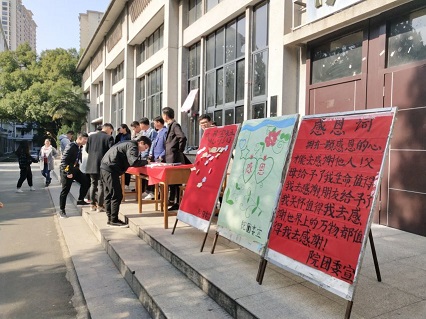 2018年11月24日下午,我院团委在感恩节这一特殊的日子,举办了一场主题为“用生命谱写辉煌,用感恩回报社会”感恩节签名活动。